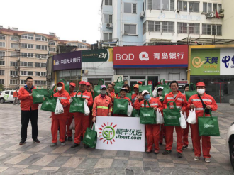 顺丰优选青岛营运负责人李吉青将早餐送到为环卫工作者中手中5月1日-7日,顺丰优选在青岛举行了“百份爱心早餐送温暖,顺丰优选公益践行活动”为市北环卫工人560余人次赠送爱心早餐。以感谢环卫工作者对青岛这座美丽的城市的辛勤付出与贡献。