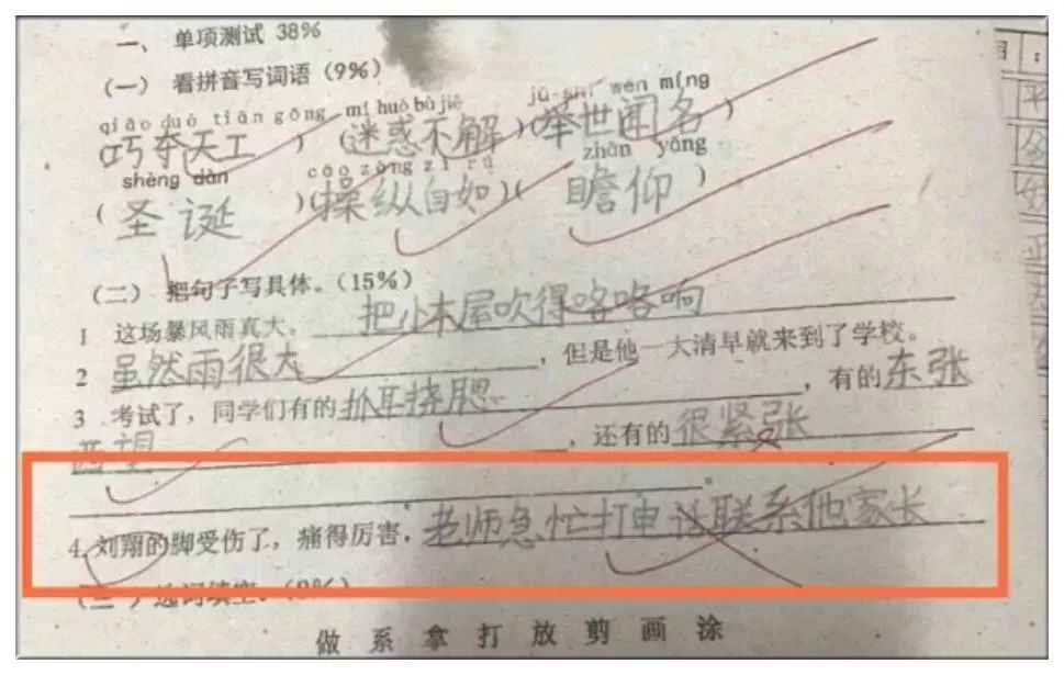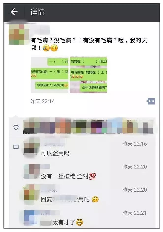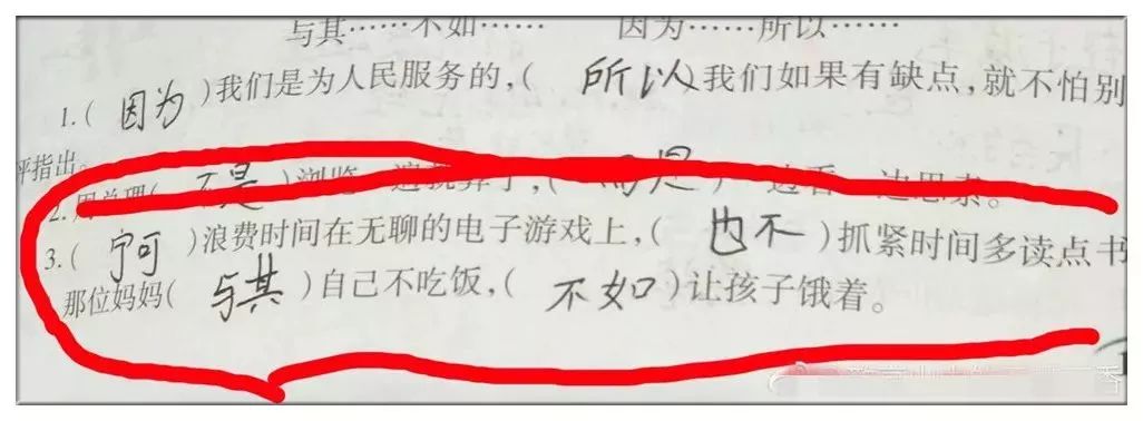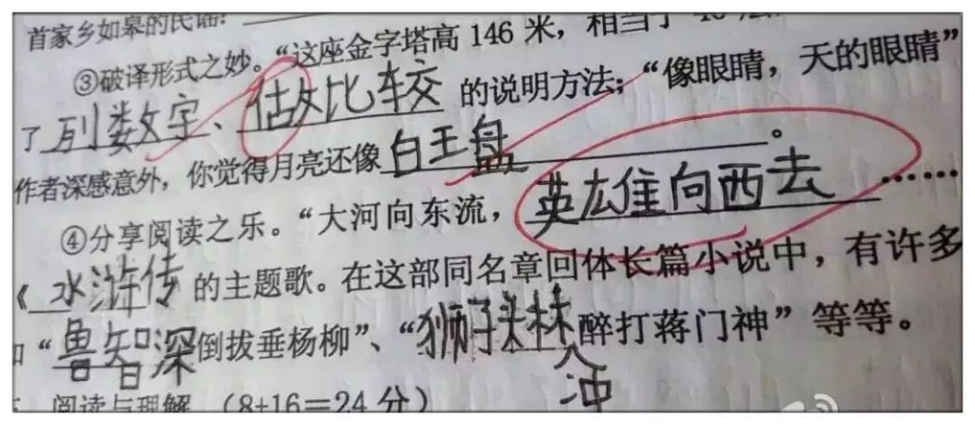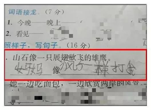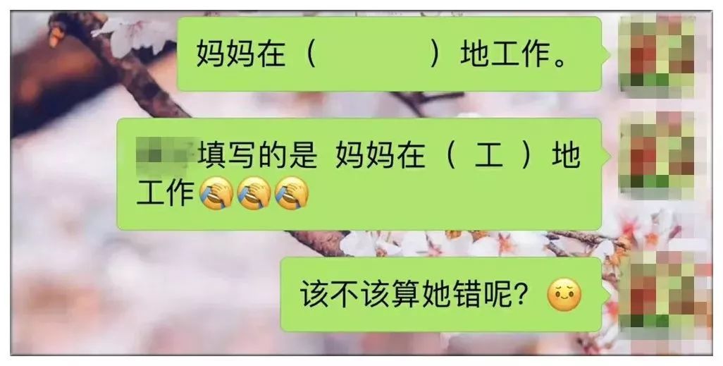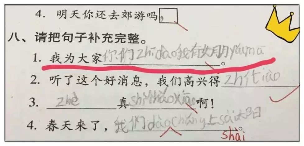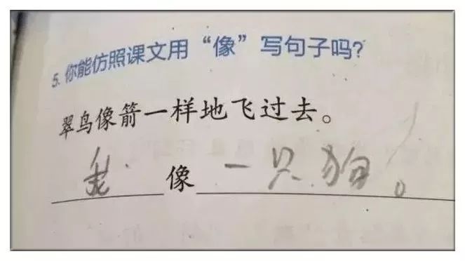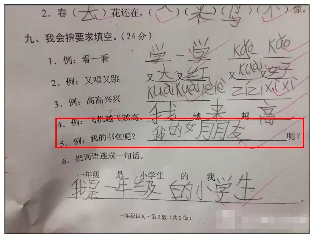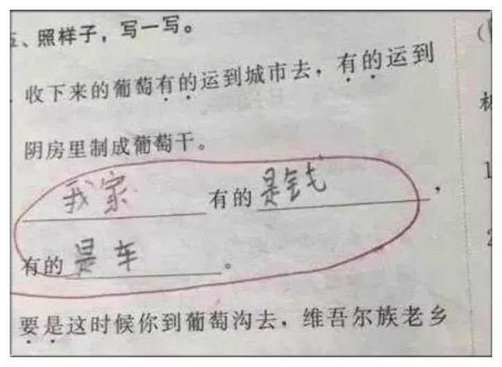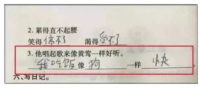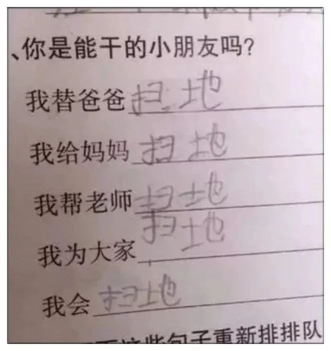 来看大图,猜测题目原意,是想让大家填(勤奋)之类,不过这孩子填的却是...