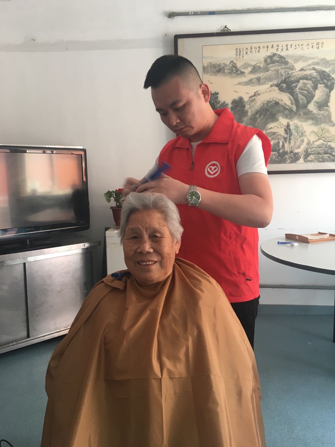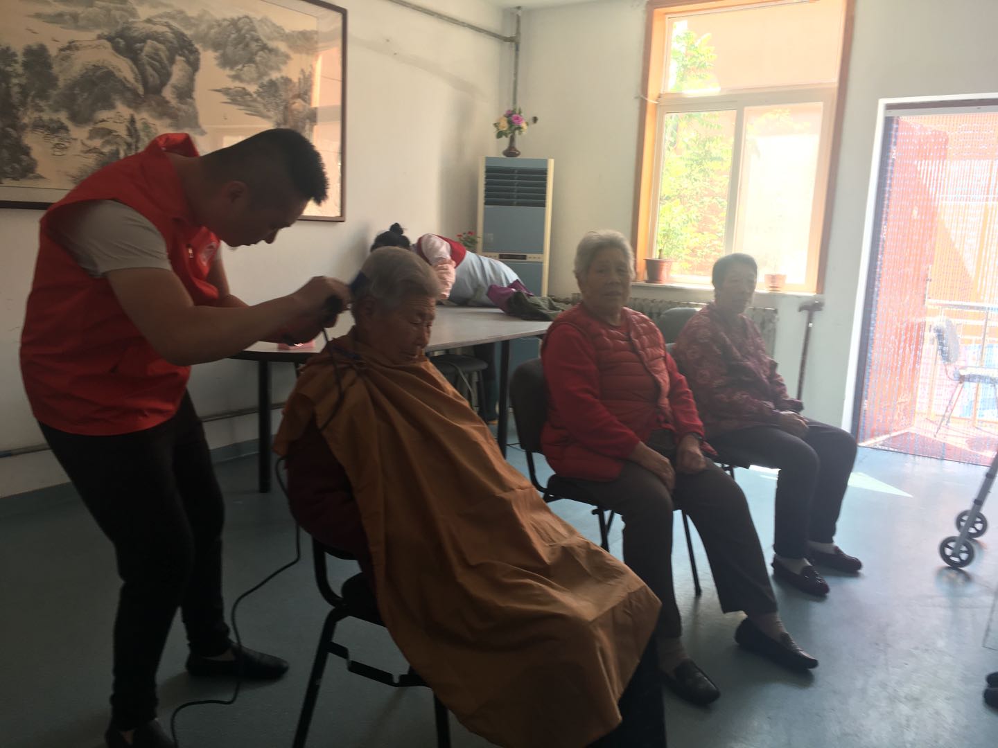 上午,志愿者来到来到敬老院,大家顾不上休息,就各自分工为老人们服务。志愿者们一边熟练的帮老人们洗头、理发、一边和老人们亲热的唠嗑,让老人们感受到了来自社会大家庭的关心。兴隆路街道社建科在得知敬老院里的部分老人因行动不便,理发成了难题后,便主动联系志愿者上门义务服务,目前此项志愿服务项目目前已是一项常规工作,志愿者们娴熟的技艺与热心的服务,深受老人们好评。