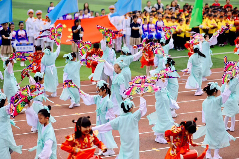 开幕式上,伴着《运动员进行曲》铿锵有力的节奏,在国旗护卫队的引领下,校彩旗方队、啦啦操方队以及9个年级代表队迈着整齐坚定、昂扬奋进的步伐,喊着嘹亮的口号依次走过主席台。他们有的器宇轩昂、刚毅挺拔,每一个正步、每一次挥臂都彰显了当代青少年的飒爽英姿和朝气蓬勃;有的身着各具特色的民族地域服饰,载歌载舞,热情洋溢,弘扬了中华传统文化,体现了“和而不同,美美与共”的校园文化理念;有的利用各具特色的道具:脚踩“风火轮”、腰挂锣鼓、手握风筝,滑出青春张扬的魅力,敲出动感活力的童年,舞出多彩斑斓的梦想;有的映着朝阳,踏着海浪,展示了蛙泳、仰泳、自由泳等水上运动项目,宛若蓝色的小精灵,向众人展示了丰富瑰丽的海洋文化;还有的身穿武术服,手持功夫扇,容光焕发、步伐矫健,演绎了气贯山河的尚武精神,将中华武术的博大内涵进行了完美诠释。