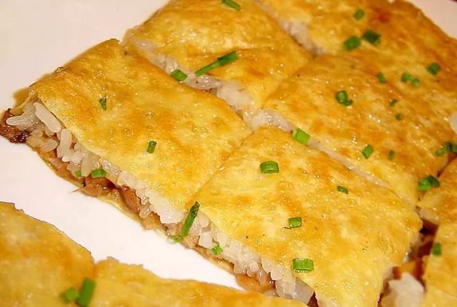 三鲜豆皮将绿豆、大米混合磨浆,在锅里摊成薄皮,以鲜肉、鲜蛋、鲜虾仁为主制作馅料,用油煎好。三鲜豆皮,皮包金黄发亮,入口酥松嫩香。
