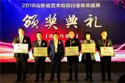 年会对2017年在工作中具有突出贡献的地区、机构和优秀个人进行表彰!分别颁发了优秀代表处奖、优秀工作者奖、十佳贡献单位奖;并为新加入山东省艺术教育联盟的新晋代表进行了授牌仪式。
