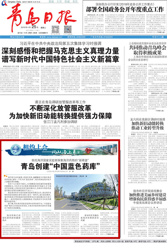 据了解,依托海洋国家实验室的协同创新平台,“中国蓝色药库”雏形已在青岛初步显现,为海洋创新药物的研究开发奠定了独特的资源基础。