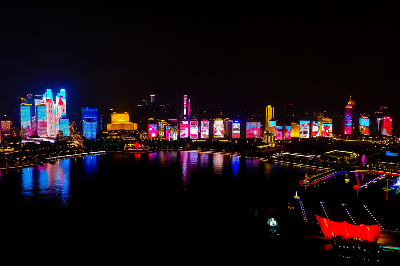 ▲这是青岛浮山湾展现青岛风光的主题灯光秀(5月7日无人机拍摄)。新华社照片