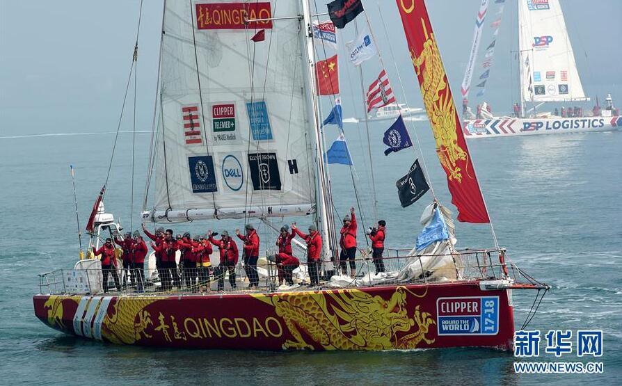 ▲参加克利伯环球帆船赛的青岛号船员从青岛起航,前往美国西雅图下一赛段的征程(3月23日摄)。