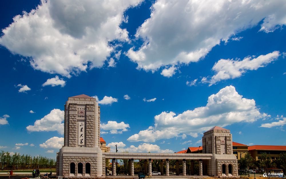 岛城今日晴朗依旧,图为蓝天下的山大新校区