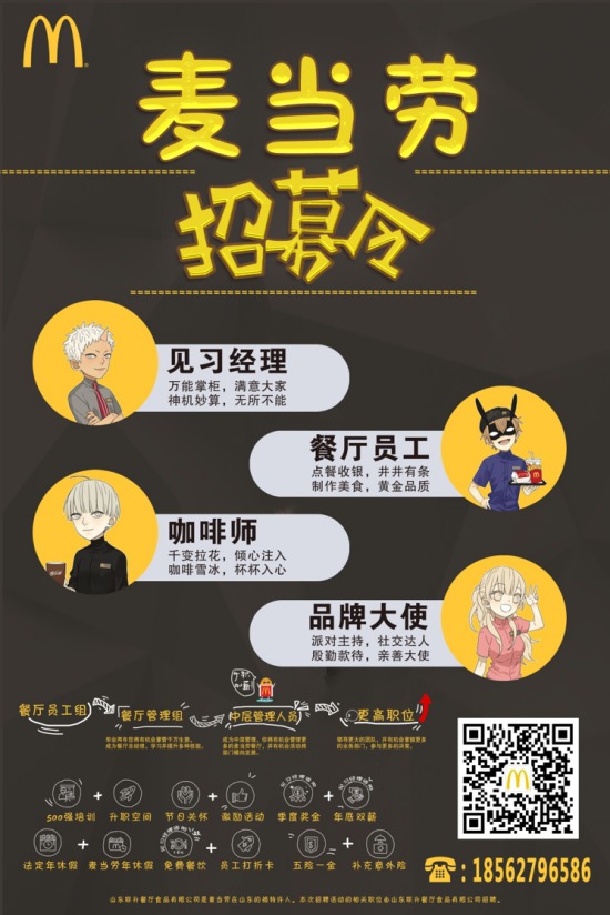 (2018年5月18日,青岛)麦当劳中国宣布启动2018年全国招聘周(5月19日到25日),吸引年轻新一代加入。麦当劳中国于2017年宣布“愿景2022”,五年内中国内地将新增2000家餐厅;麦当劳中国2018年预计全年招聘八万人,支持业务快速增长。