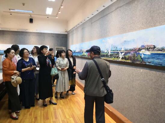据悉,从最初的策划、构思,拍出摄影作品,经过合成和电脑制作,最后以油画的形式绘出这幅80米长的巨幅油画。两位艺术家历经四年的努力与探索,最终通过摄影画这种别致的艺术形式展现给大家。摄影画产生于上个世纪六七十年代的西方,当时被西方人称为“手绘照片”,以皮埃尔和吉尔为主要代表人物,作品主要是人物肖像。在创作《蔚蓝青岛 最美海湾》的过程中,两位艺术家对这种艺术形式做了一系列有益的探索和试验。通过现场的作品,除了能感受到摄影和绘画的“硬底子”,更能捕捉到的气息是艺术家的灵魂和情怀。作为土生土长的青岛人,王广尧和周维明两位艺术家所想展示的不只是眼里的青岛,而是心里的青岛。整幅画卷的构图庄重磅礴,色彩带有青岛鲜明的文艺特色,海的蓝色,红瓦绿树的鲜明展现,是他们对家乡青岛的记忆的表达。全卷海鸥飞翔,灵动的表达了青岛的热情与自由。