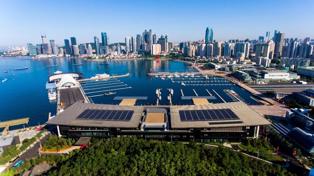 青岛五四广场、奥帆中心及周边景色。新华社记者 郭绪雷 摄