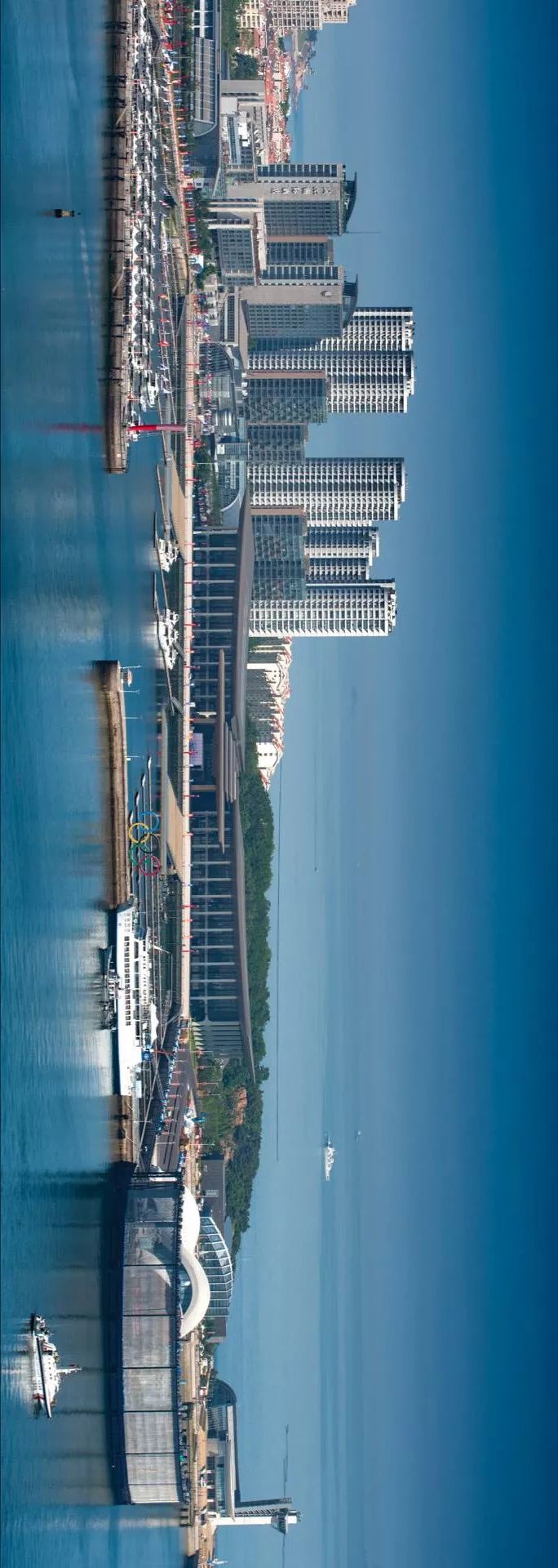 奥帆中心海风阵阵,飞帆渺渺。浮山湾畔,鳞次栉比的摩天大楼勾勒出一幅生机盎然的海天画卷。新华社记者 郭绪雷 摄