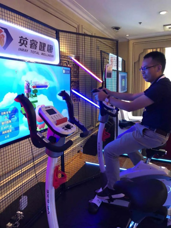 (2018年度中国特许加盟大会.CCFA协会会员正在体验英睿VR单车)
