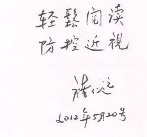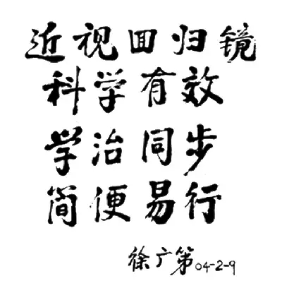 徐广第教授对于近视回归镜防控近视原理非常赞同并题词