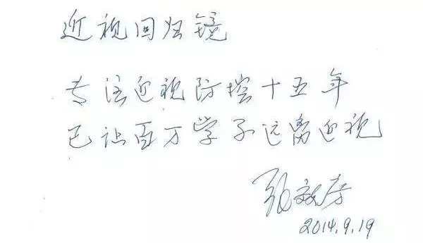 对其原理及功效进行了详细剖析并给予较高评价,还为近视回归镜题词。