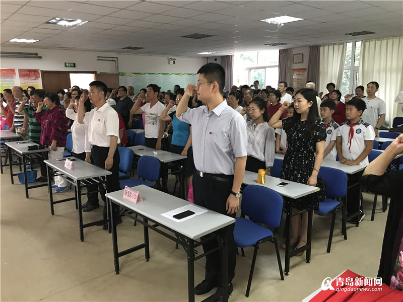 上午九点半,天台路社区党委书记王家照、党委副书记臧慧玲、社区党支部书记、党员骨干以及共建单位的党员干部们汇聚一堂,在臧慧玲同志的带领下,大家齐唱国歌,并在党旗下庄严宣誓,重温入党誓词,再次感受了作为一名党员所肩负的神圣职责和使命。