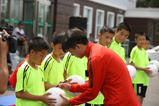 来自长春亚泰足球俱乐部的球员关昊,现场和学生们进行了一场5V5的足球比赛并捐赠了签名足球。长春亚泰足球俱乐部副总经理李刚在活动现场表示:“我们捐献的不是简单的一个运动场,捐献的是希望,是体育的种子。让孩子们接触、认识到足球,就会在孩子心中播种下兴趣的种子。“