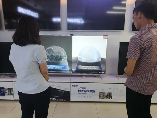 进入夏季,冰箱的使用和购买需求大大增加,市面上的冰箱品牌繁多、保鲜功能各异,很容易让人陷入选择困难。6月23日,10万张搭载智慧云店APP的电视大屏循环播放一则50秒的冰球视频,即冰球在海尔全空间保鲜冰箱飨宴系列和普通风冷冰箱中冷冻7天后,分别出现了冰球与状若冰碴的鲜明对比。通过此视频,用户能够轻松地判别冰箱的保鲜效果。