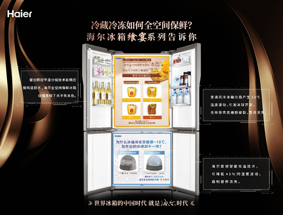 消费升级的时代背景下,用户愈加追求高品质生活,尤其在健康饮食方面,对冰箱的保鲜效果提出了更高要求。基于此,海尔全空间保鲜冰箱飨宴系列搭载了原创的智能恒温科技,通过在冰箱内加装风机遮蔽装置,将化霜期间产生的热气阻隔在冷冻室外,使冷冻室温度波动低于5℃,解决了食材营养流失和细菌滋生问题,填补了行业的冷冻室保鲜科技空白。