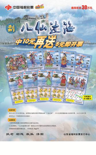 为回馈彩票购买者,自2018年7月24日零时起,购买“八仙过海”彩票,中10元再获赠面值5元的即开票,200万元即开票送完为止(可能略有结余或超送)。回馈力度非常大!