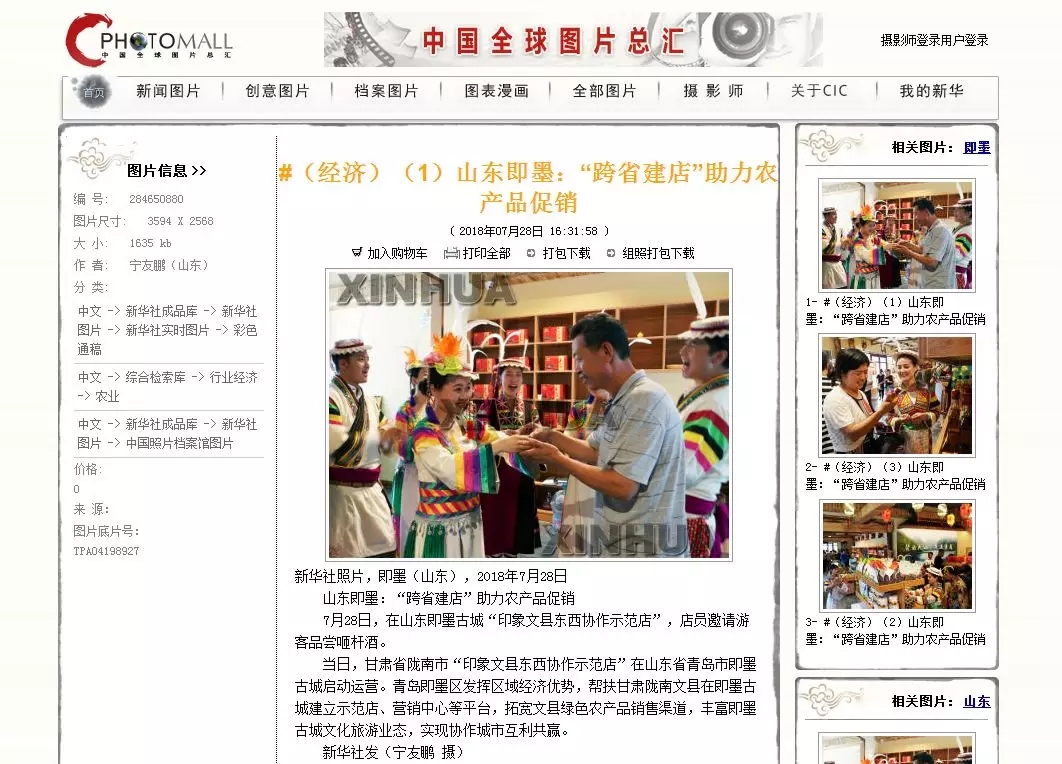 新华社面向全球发布图片新闻通稿,推介即墨典型做法。报道称,青岛即墨区发挥区域经济优势,帮扶甘肃陇南文县在即墨古城建立示范店、营销中心等平台,拓宽文县绿色农产品销售渠道,丰富即墨古城文化旅游业态,实现协作城市互利共赢。