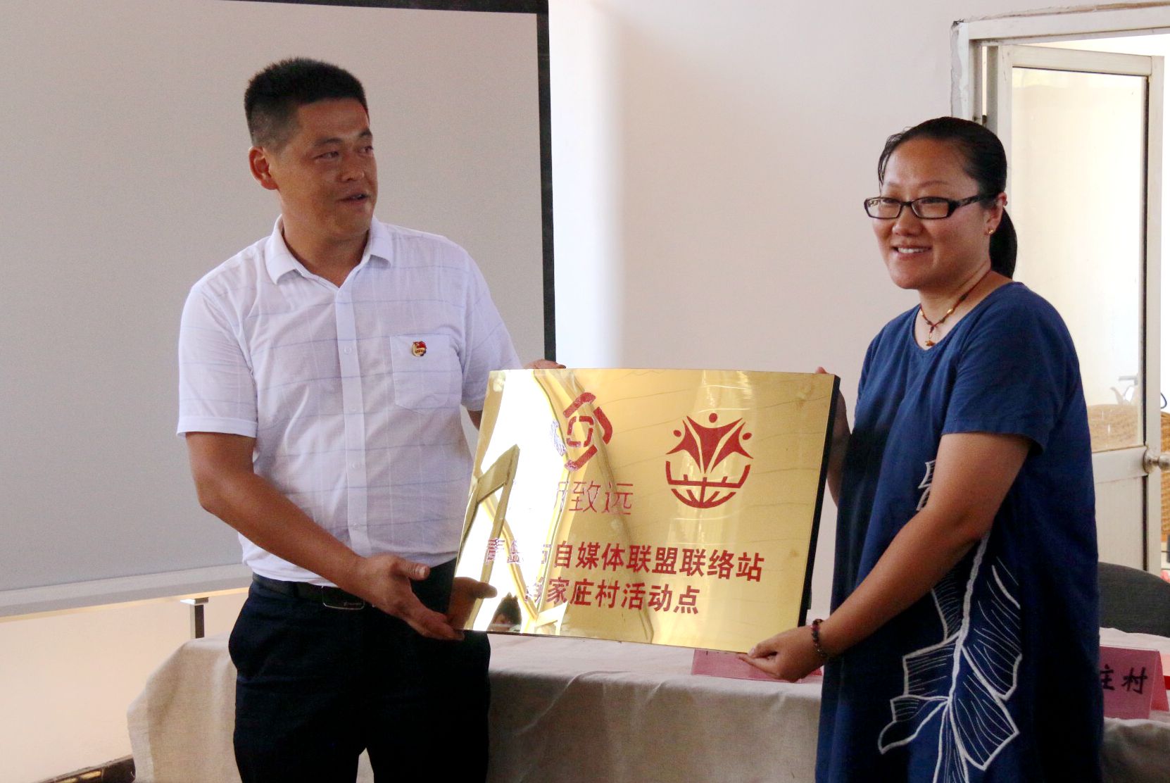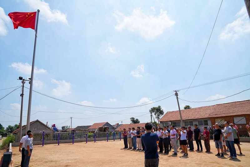 在上午的签约仪式上,肖家庄村委代表宣读了助力乡村振兴帮扶共建协议书,共建单位代表向肖家庄村移交帮扶捐助款。随后,肖家庄村委向青岛自媒体联盟授予了“青岛市自媒体联盟联络站肖家庄村活动点”,作为自媒体扶贫教育基地和乡村采风活动点,这是市北区文化新闻出版局协调社会资源助力乡村振兴工作的创新。在此之前,市北区文化新闻出版局发动了全局个人为肖家庄村进行了帮扶捐款,所捐款项用于村委购买、安装国旗杆。在签约仪式之后,组织肖家庄村党员群众和共建单位代表一起进行了庆祝建军节升国旗仪式。
