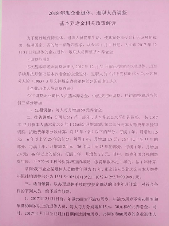 附:2018年度企业退休、退职人员调整基本养老金相关政策解读