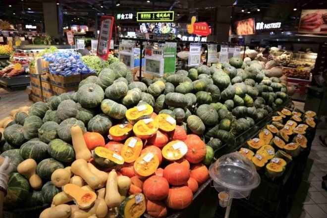 走进南京路店,最吸引人眼球的是生鲜区,改造升级后的南京路店生鲜区面积大幅扩张,这里不仅有烟台富士苹果、莱阳梨、崂山桃等来自国内基地的各种特色水果、蔬菜,还有新西兰姬娜果、泰国榴莲、菲律宾菠萝等来自海外的各种特色商品,这些商品全部由生产基地直达门店,不仅保证了产品的品质和新鲜度,而且在价格上给消费者带来了更多的实惠。