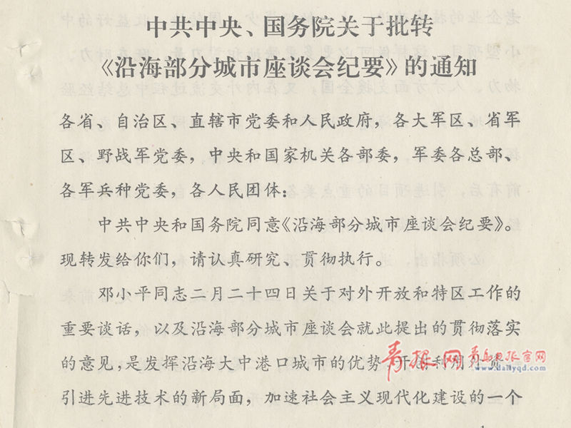 ▲1984年5月4日,青岛入列首批14个沿海开放城市。