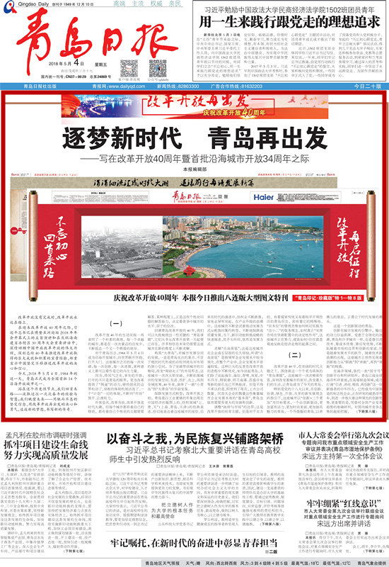 改革开放40年,站在这个历史性的节点,眺望未来。青岛这座“以改革开放而兴”的城市,惟有抱持“改革开放再出发”的勇气和决心,惟有用一系列更大力度的改革开放举措,才能在新时代,创造出新的辉煌、书写新的业绩。