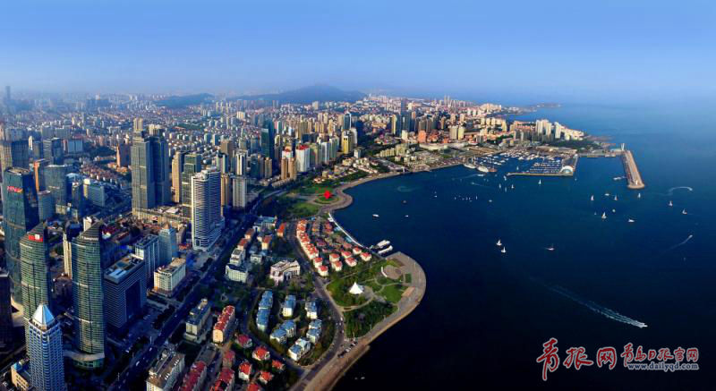 ▲40年来,青岛一次次大胆突破,演绎了一曲“小青岛”到“大青岛”的华丽变奏。图为航拍青岛浮山湾。