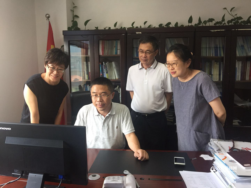 市科技局副局长吴绪永(左二)做客青岛市政务网“网络在线问政”,介绍青岛今年创新创业情况。