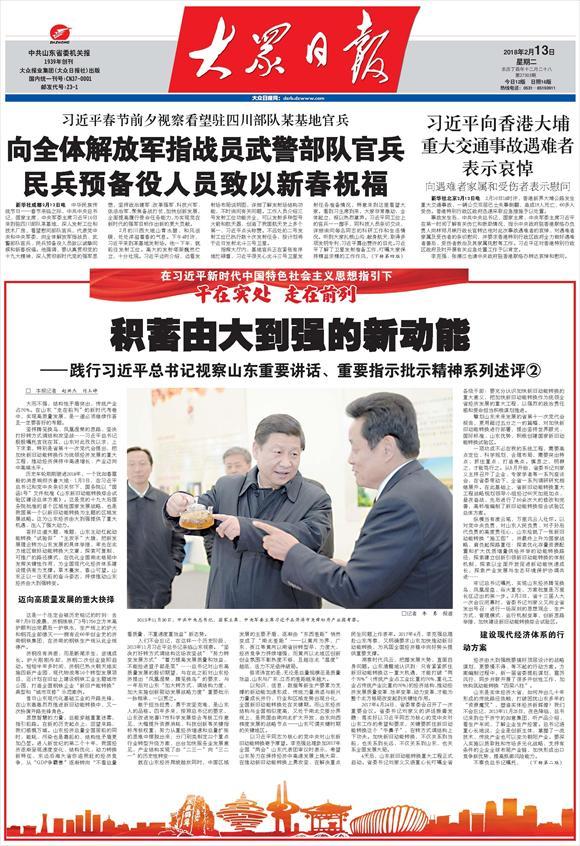 历史车轮刚刚驶进2018年,一个犹如春雷般的消息响彻齐鲁大地:1月3日,在习近平总书记和党中央亲切关怀下,国务院以“国函1号”文件批准《山东新旧动能转换综合试验区建设总体方案》。这是党的十九大后国务院批准的首个区域性国家发展战略,也是我国第一个以新旧动能转换为主题的区域发展战略。这为山东经济由大到强提供了重大机遇、注入了强大动力。