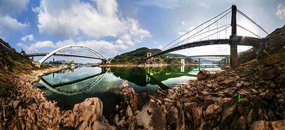 桥、山、水构成了一幅奇妙画卷。首席记者 雷其霖 摄