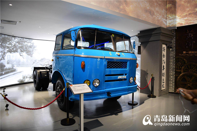 “快看,黄河JN150!”没往博物馆走多远,就有“懂行”的记者激动地叫了起来。展现在眼前的是一辆蓝色的重型汽车,巨大的车头让人忍不住联想起帅气拉风的变形金刚。据工作人员介绍,“黄河JN150”8吨载重汽车设计制造于1960年,是中国第一辆重型汽车,它的诞生彻底结束了中国不能生产重型汽车的历史。旁边的老照片记录了黄河JN150下线时的场面,即使隔着半个多世纪,仍然能感受到当时的激动与自豪。