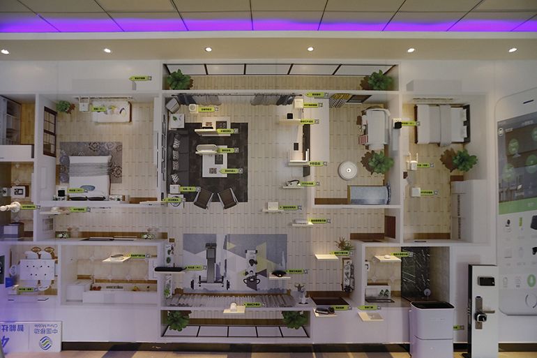 中移铁通有限公司智能产品分公司展厅中展出的智能家居产品。