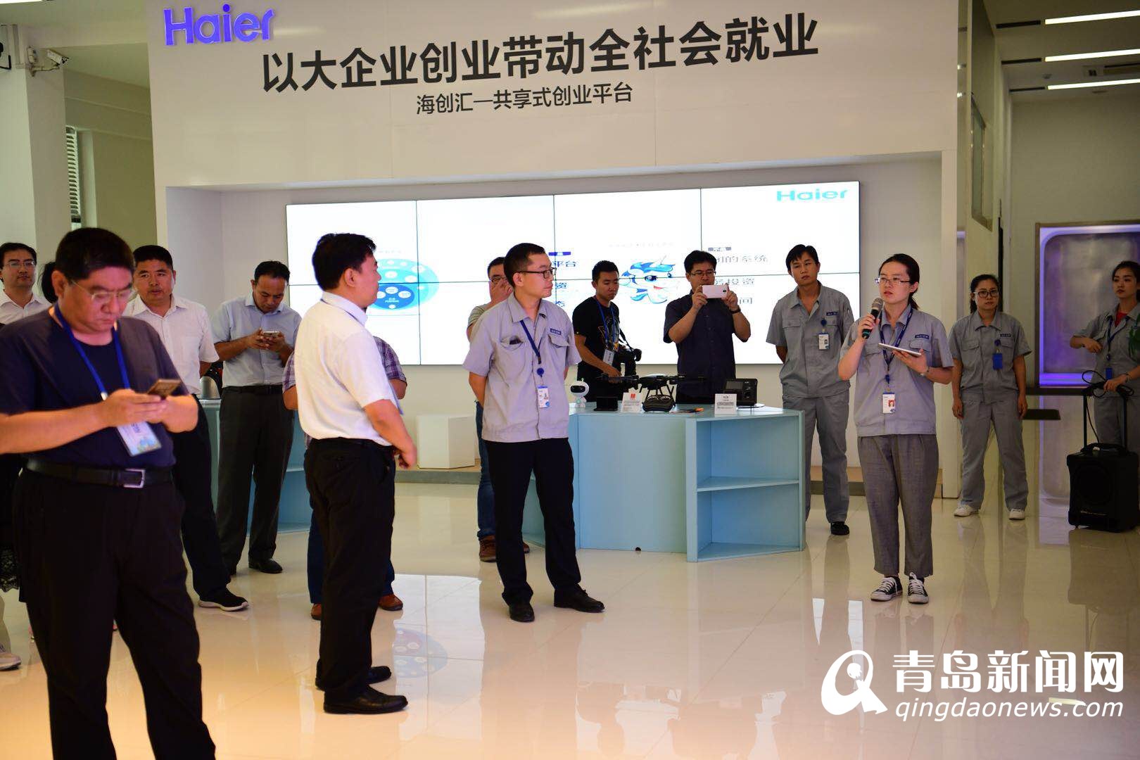第十四届中国网络媒体山东行采访团走进海尔胶州互联工厂。