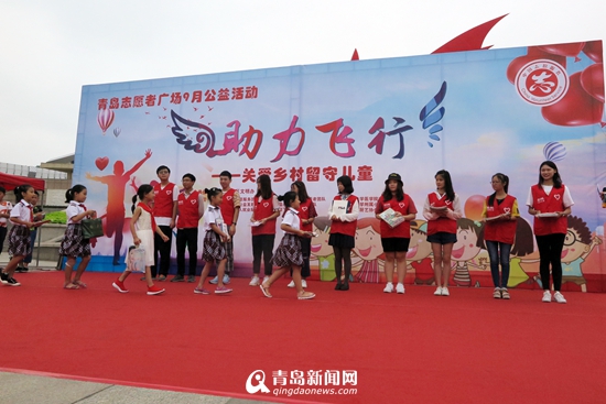 青岛新闻网9月16日讯(记者 于泓)在边远山村中,有许多孩子因为父母在外地打工,只能与老人留守在家乡,他们比城市里的孩子更需要呵护和关爱。昨天,青岛市志愿者广场举行9月份主题活动——“助力飞行-关爱乡村留守儿童”,多支志愿服务团队和市民现场参与,不仅为乡村留守儿童献上了一份爱心,也向全社会发出了倡议,请爱心市民和爱心团队发挥各自所长,共同加入到志愿者行动中来。