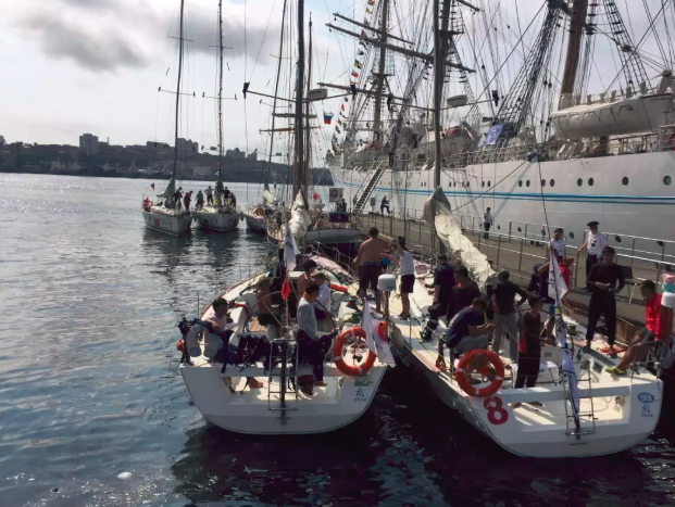 千余名当地民众来到码头欢送船队,祝福参赛运动员一帆风顺,一路平安。与5艘“远东杯”赛船一同驶离符拉迪沃斯托克的,还有来自日本、韩国、印尼的多艘长约百米的高桅杆帆船,它们刚刚结束2018远东高桅杆帆船赛的征程。在符拉迪沃斯托克期间,中国帆船帆板运动协会、青岛市与远东高桅杆帆船赛组织方签署了合作备忘录,这项极具观赏性和影响力的国际知名赛事有望在2020年登陆青岛。