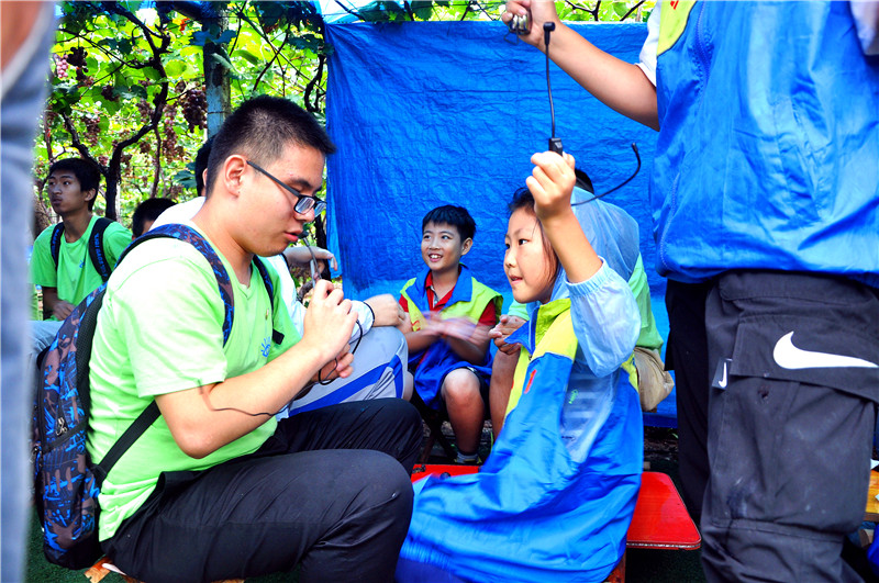 志愿者们和盲校的学生面对面排排坐,一起品尝丰富的喜悦活动当天虽然有点小雨,但丝毫没有影响到孩子们的热情。考虑到大部分的盲校学生是没有进过葡萄园的,所以活动特地安排了孩子们在采摘之前,一起去通过“触摸”感受葡萄叶子的形状,以及在手上的感觉。找到葡萄后闻一下葡萄的味道,用手感受葡萄的质感,这对盲校的学生们来说是很新鲜的体验。