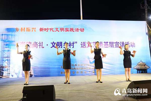 青岛新闻网9月19日讯(记者 陈志伟)为倡导和传播优良家风、民风和村风,培育“乡风文明之花”,9月17日晚,由青岛西海岸新区文明办、琅琊镇政府主办,青岛真情巴士集团承办的“崇德尚礼·文明乡村”送文艺进基层宣讲活动走进琅琊镇砚台地村,为当地近500名村民带来了一场文化的饕餮盛宴。