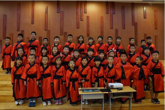 本次活动的第一个主题就是“开笔礼”。众所周知,开笔礼是现代兴起的一种礼仪,少儿开始识字习礼的一种启蒙教育形式。实验小学和美一班的同学们身穿统一的汉服恭敬有序,在启蒙老师的引导下,重温中华传统开笔礼仪式,通过“正衣冠”、“朱砂启智”、“击鼓鸣智”、“起笔顿悟”等具有传统文化气息的仪式,让刚入学的孩子们在活动中感受中华传统文化的启迪。