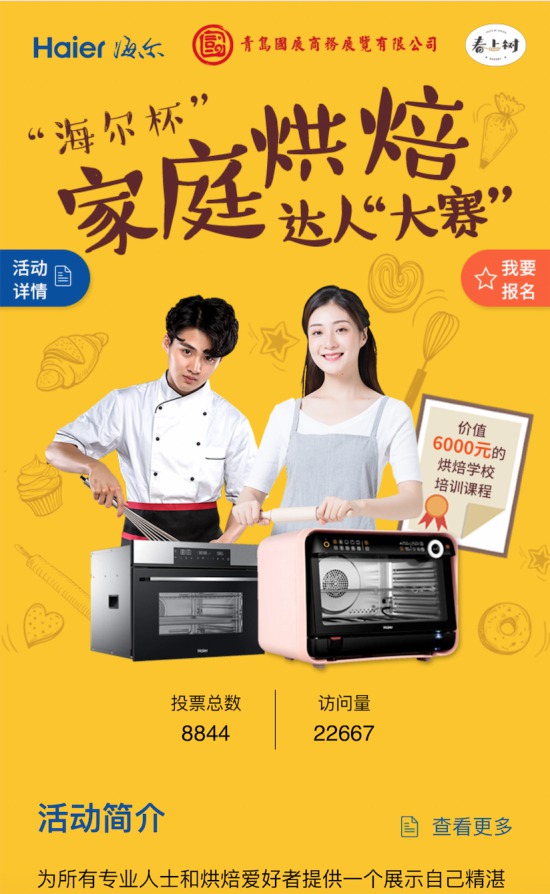 “海尔杯”家庭烘焙达人赛是由青岛海尔集团、青岛国展商务展览有限公司、青岛春上树食品科技有限公司联合主办,旨在为所有专业人士和烘焙爱好者提供一个展示自己精湛技艺的舞台,给更多人才提供发挥自我的交流平台,也共同推动青岛烘焙文化的传播与发展。