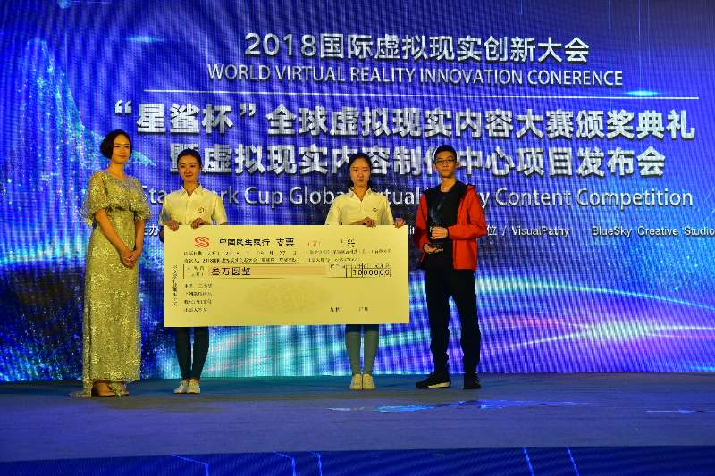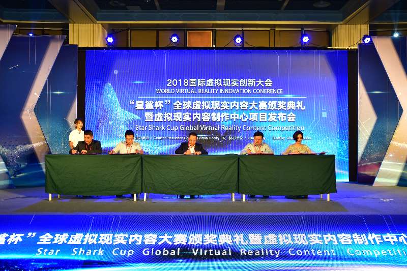 由虚拟现实内容制作中心主办,美国VisualPathy平台及BlueSky Creative Studio公司协办的“星鲨杯”全球虚拟现实内容大赛颁奖盛典于2018年9月27日在2018国际虚拟现实创新大会上圆满落幕。典礼上颁发了此次“星鲨杯”大赛的八个获奖作品,并顺利地进行了虚拟现实内容制作与应用创新研究院揭牌仪式和国家级虚拟现实内容制作应用型人才培养计划签约仪式。