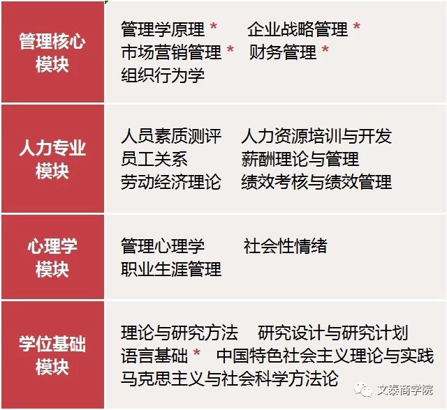 管理核心模块+人力资源模块+心理学模块+学位基础模块
