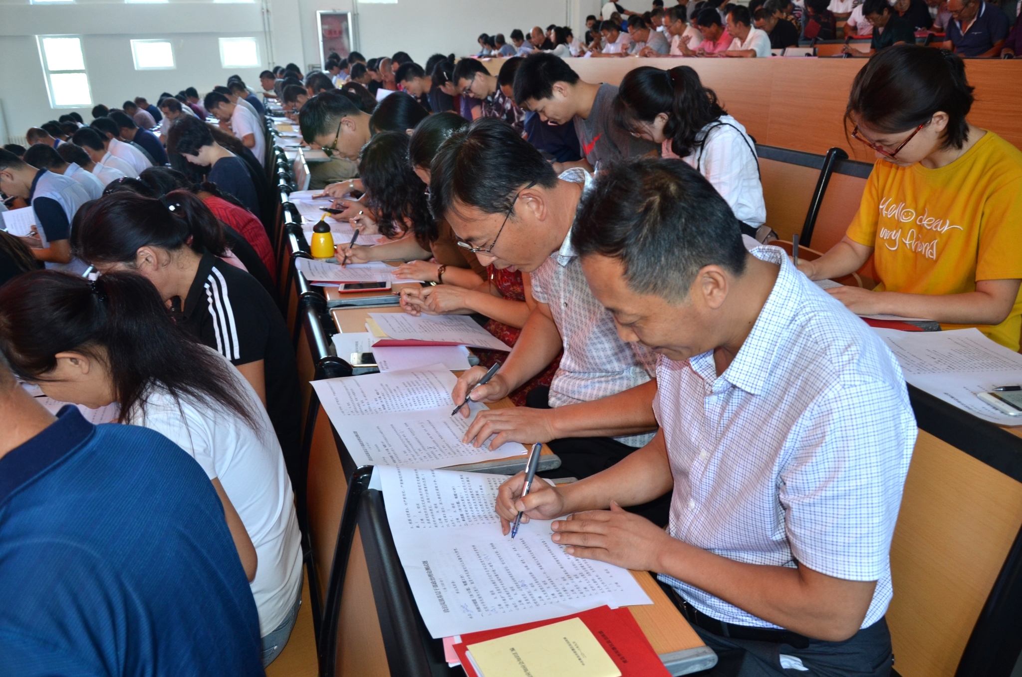 “会议进行第三项,进行政治理论水平闭卷考试,请工作人员发放试卷。”在近日召开的段泊岚镇基层干部政治理论培训动员会上,在听完来自青岛市委党校刘小利教授关于《中国共产党章程》的精彩解读后,组织第一书记、机关干部、村“两委”成员等500多名与会人员进行了现场考试,考试内容涵盖十九大报告、党章党纪等应知应会知识,对前一阶段的理论学习成果进行及时检验。