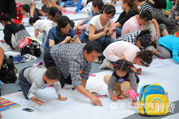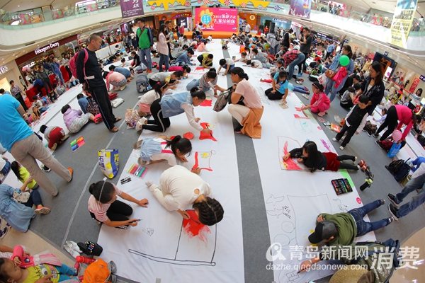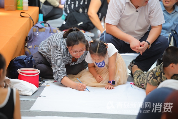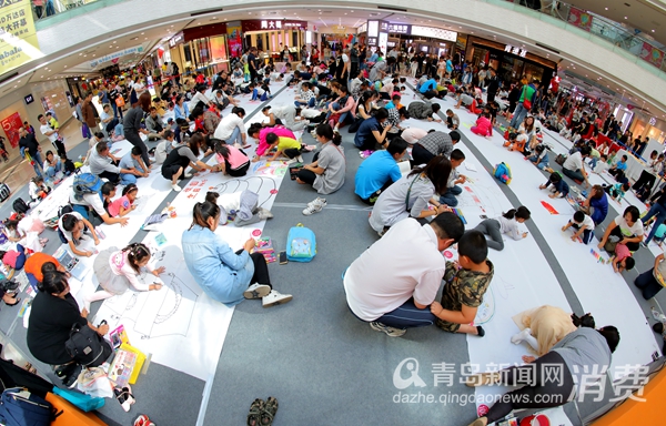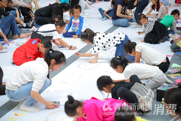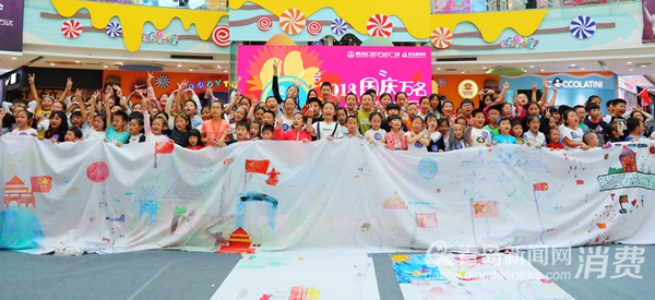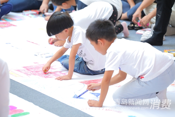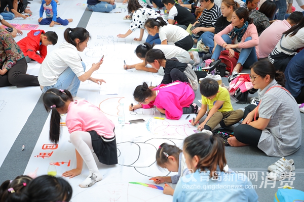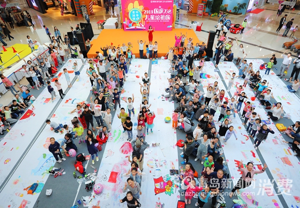10月1日下午,青岛CBD万达广场有一场特别的活动,孩子们现场用画笔描绘祖国秀丽山河和美好生活,以自己的方式,抒发对祖国的热爱,为祖国的69岁生日献礼。