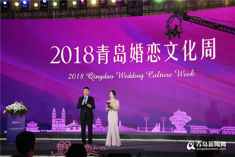青岛新闻网10月16日讯 (记者 姜舒骞 李金燕)10月16日,由青岛市旅游发展委员会、青岛市市南区人民政府、青岛旅游集团、青岛市婚庆礼仪行业协会主办,青岛市市南区文化新闻出版局(旅游局)、青岛市市南区商务局、青岛市市南区人民政府新闻办公室、青岛海诺投资发展有限公司承办的2018青岛婚恋文化周在奥帆中心国宴厅开幕。开幕式以开场秀《爱琴岛•恋上TA》拉开2018青岛婚恋文化周的序幕。影片根据3对爱人的真实故事改编,通过演绎他们在青岛这座城市的相识、相知、相恋、相守,展现几代人的浪漫爱情。