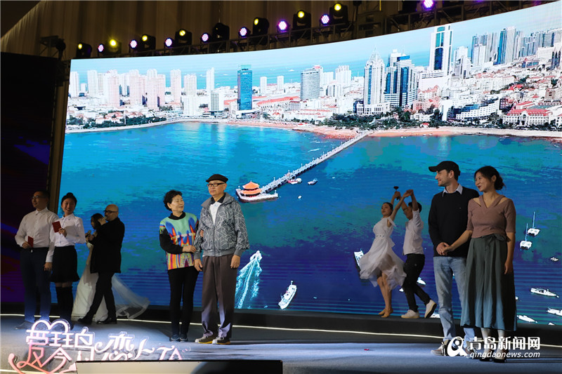 开场秀《爱琴岛•恋上TA》以及《因为爱情》情景表演中的3对主人公也在开幕式现场登台亮相,接受大家的祝福。他们分别是在开幕式两个小时前刚刚完成登记结婚的陆志鹏、张璇夫妇,今年恰逢金婚之喜的邹晓勋、郭小倩夫妇,以及跨越大洋因为共同的爱好相识相知的异国情侣汉斯、秦艺宸。因为爱情,他们选择了彼此;因为爱情,他们在青岛相知相守。此心安处,便是吾乡。