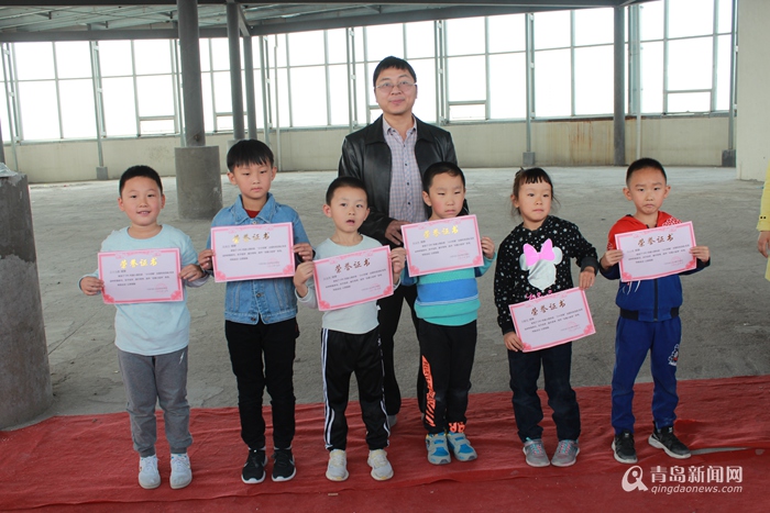 4、学校相关领导和负责人给小朋友们颁发课外活动实践证书,共同合影留念,庆祝此次活动圆满成功。