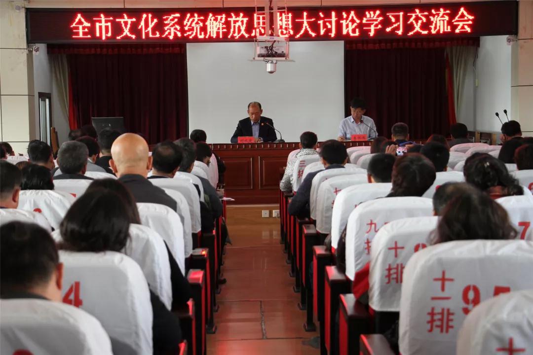 刘成爱强调,习近平新时代中国特色社会主义思想是领航的灯塔、发展的真经、行动的准绳,推动学习往深里走、往实里走、往心里走。解放思想不是空想、不是妄想。心中要多学习,要及时掌握上级的风向标,必须认清全国的大势,认清各级党委的部署安排,结合工作实际,来解放自己的思想。否则解放思想就不得要领。通过学习、交流发言,要牢牢把握新时代、新思想、新作为、新担当。我们处在伟大的时代,伟大的时代就需要有伟大的作品。文化工作者担负着神圣的使命,应该创造出更加优秀的作品。