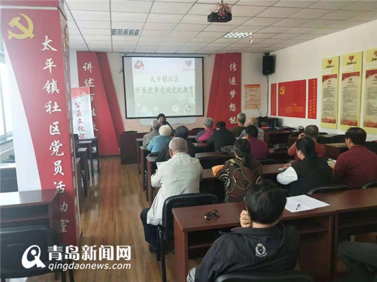 青岛新闻网10月31日讯 为进一步教育和引导党员自觉学习党章党规党纪,10月31日上午,太平镇社区党委组织社区党员开展主题党日教育活动,会上传达了学习党章党规党纪教育主要精神并带领大家学习了新修订的《中国共产党纪律处分条例》。